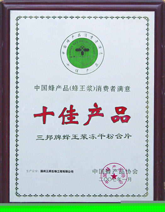 中國蜂產(chǎn)品消費(fèi)者滿意十佳產(chǎn)品